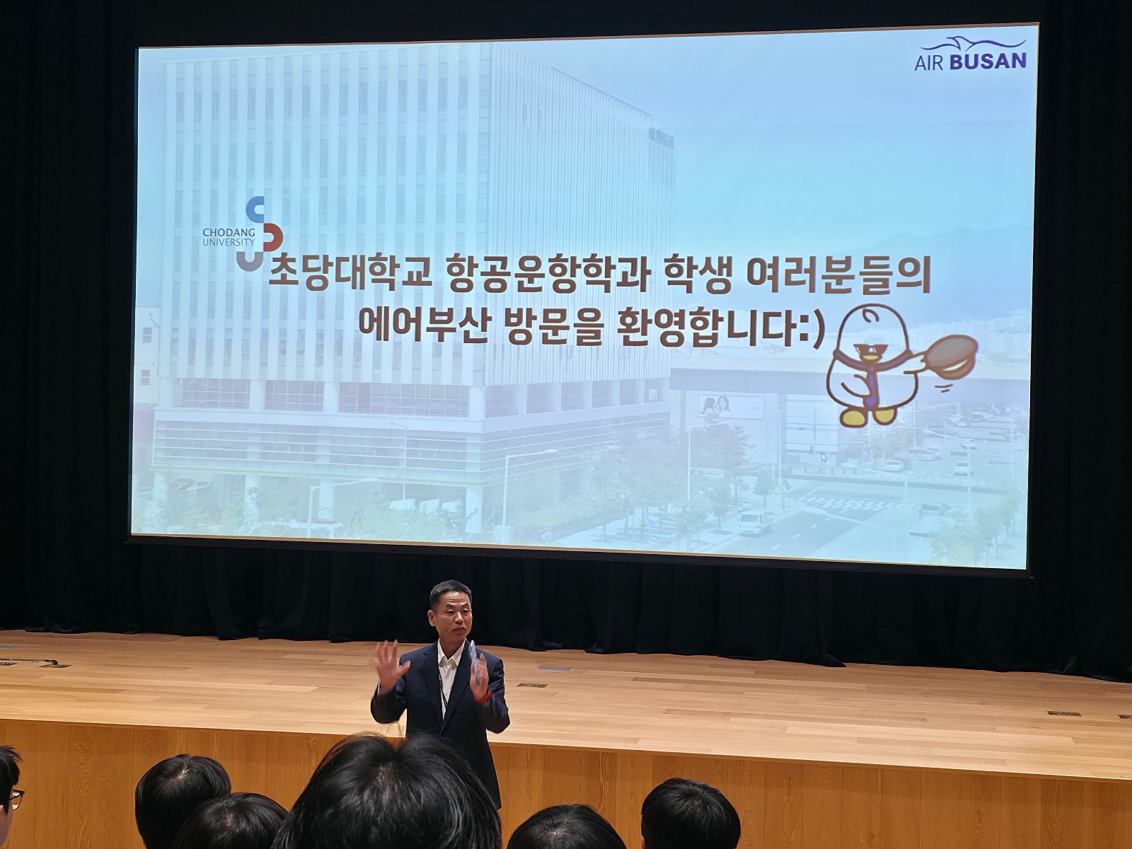 에어부산 견학은 안전본부장 정근화님의 환영사로 시작되었습니다.
