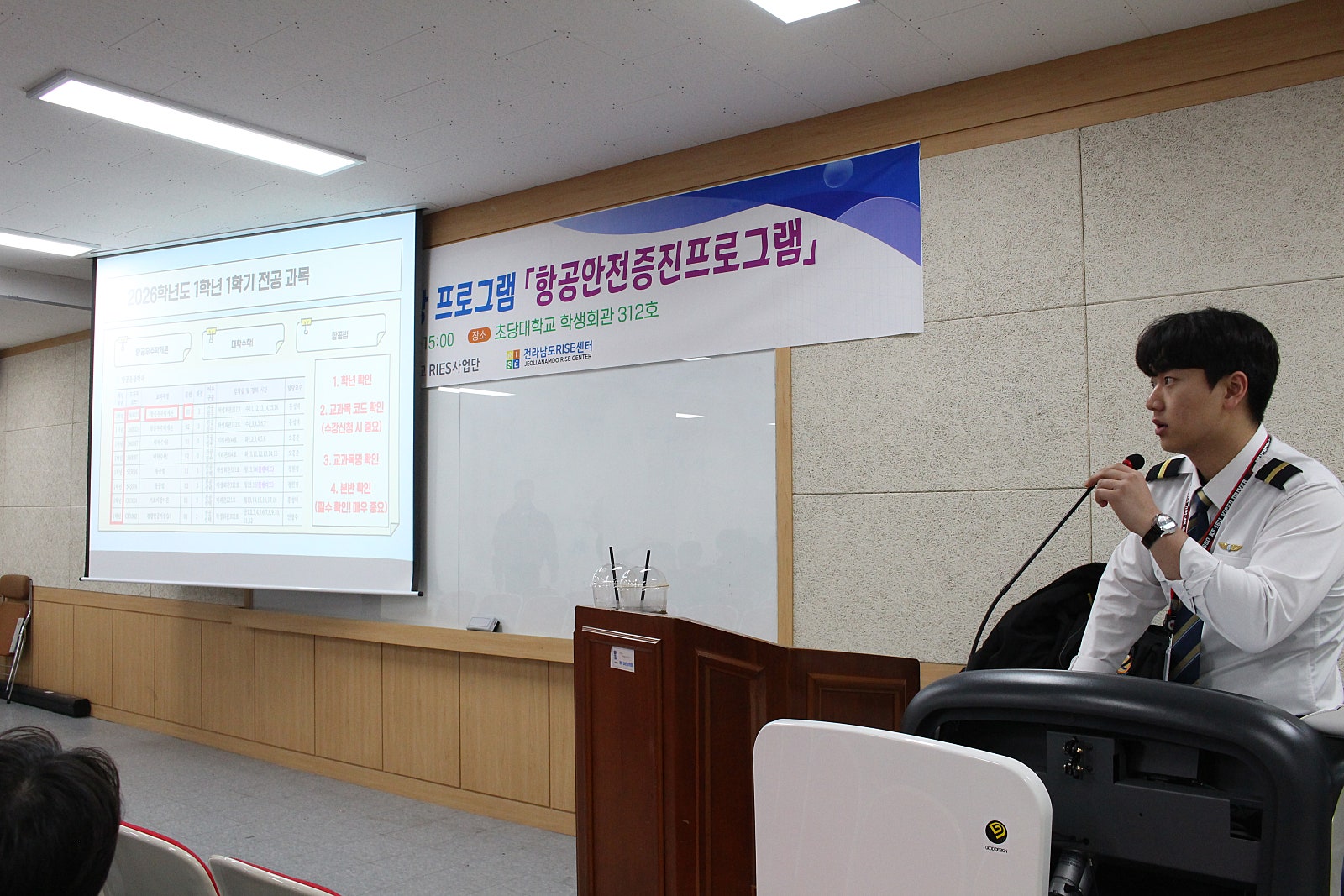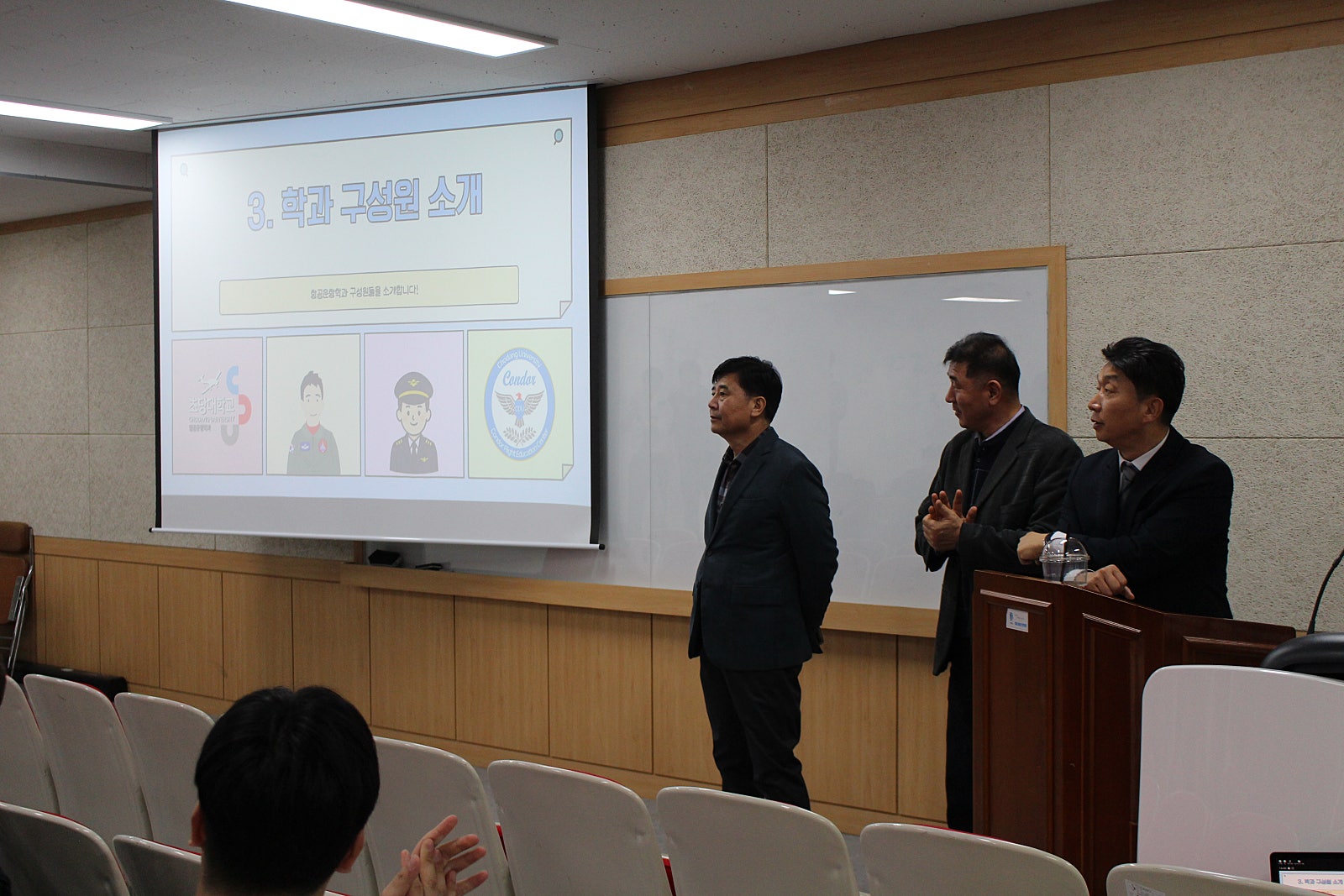이날, 정원경 학과장님(비행교육원장)께서는 미래의 항공 종사자로서 가져야 할 마음가짐,